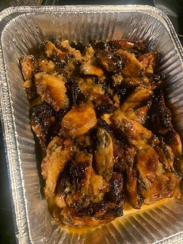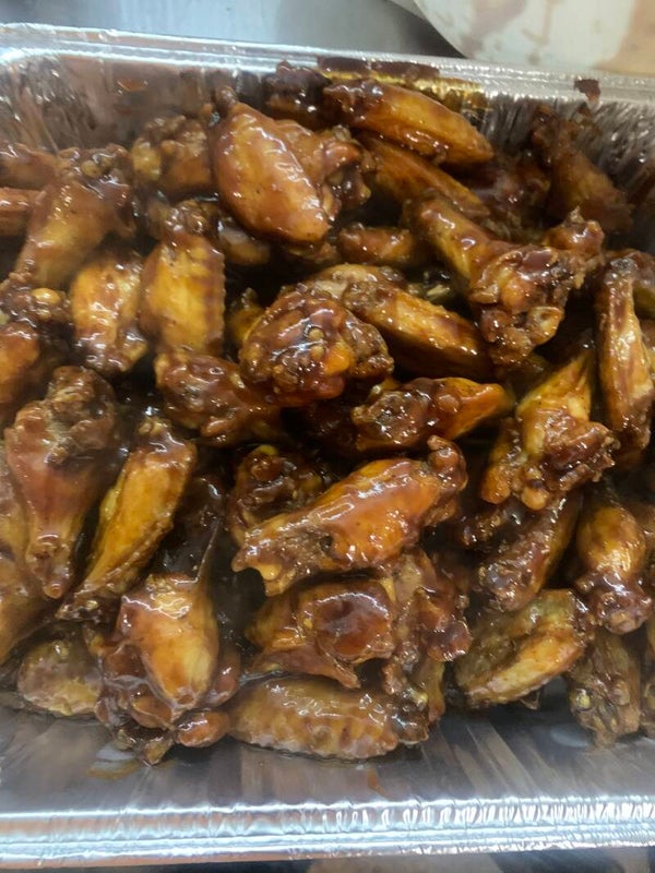 50 drummers wings: Hot, mild, bbq, lemon pepper, jerk, teriyaki, garlic Parmesan, and plain